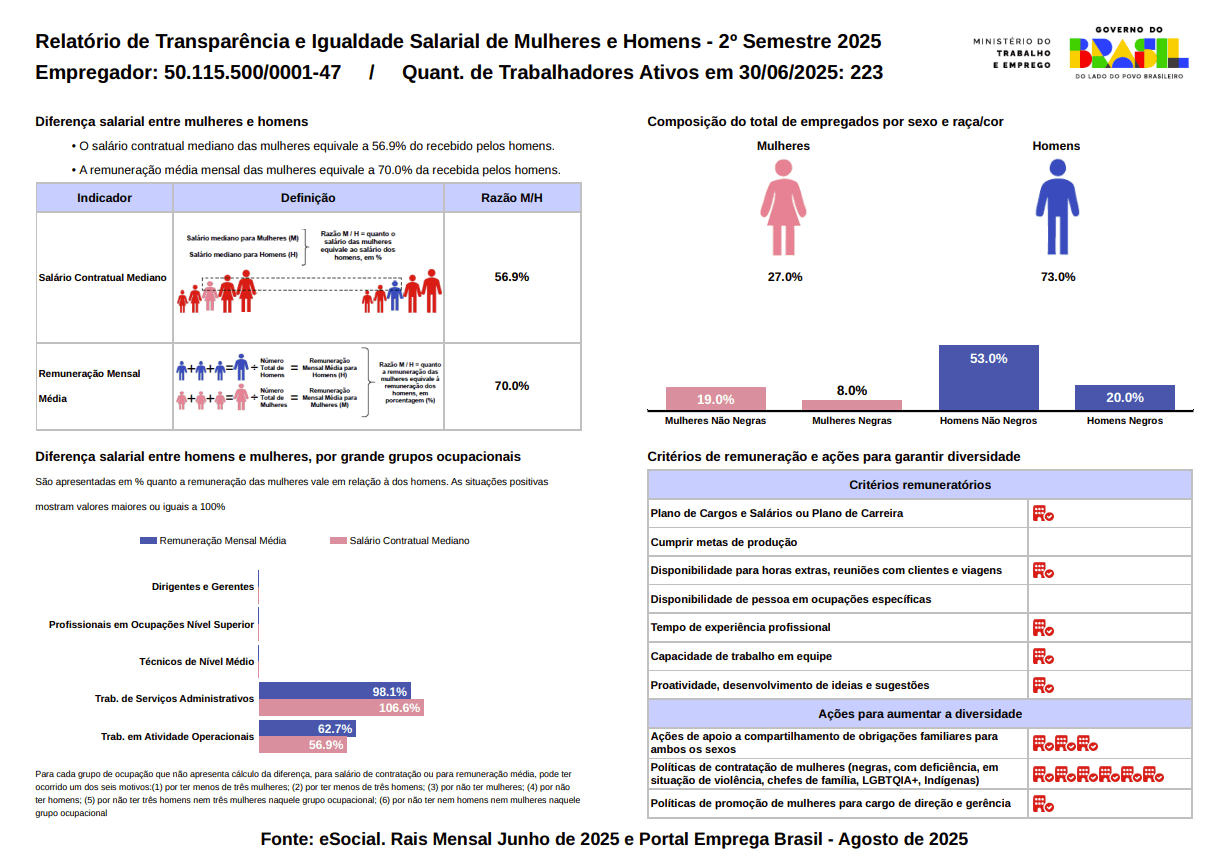 Relatório de Transparência e Igualdade Salarial de Mulheres e Homens – 2º Semestre 2025